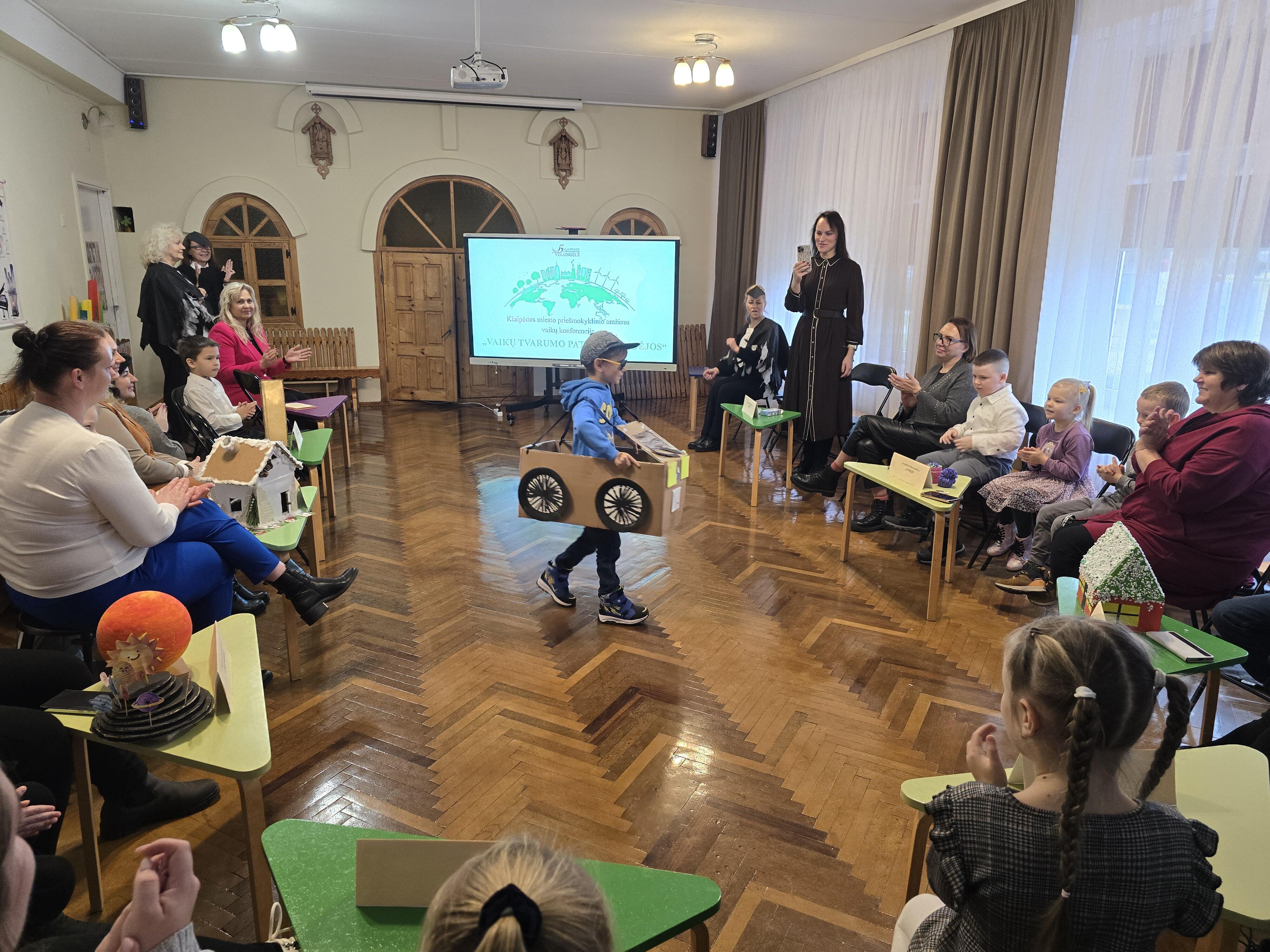 Darželio „Rūta“ pranešėjas Augustas pristatė vaikų vizijas apie ateities, gamtai draugišką automobilį, o „Volungėlės“ pranešėjas Ainis pranešime „Aš ir tvarumas“ kalbėjo apie tai, ką kiekvienas gali nuveikti dėl švaresnės gamtos, pabrėždamas, kaip tvarumo idėjos kuriamos kartu su tėvais, stiprinant bendruomenės ryšį.