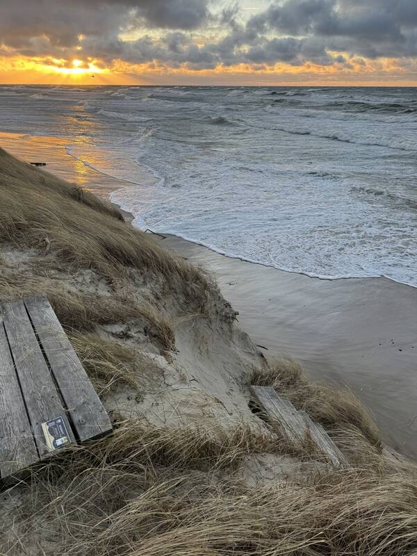 Jeigu pamatėte stichijos pažeistus laiptus, paplautą apsauginį kopagūbrį, fiksuokite ir dėkite nuotraukas po šia žinute nurodydami vietą. Ačiū!“ – įraše skelbia Kuršių nerijos nacionalinis parkas.