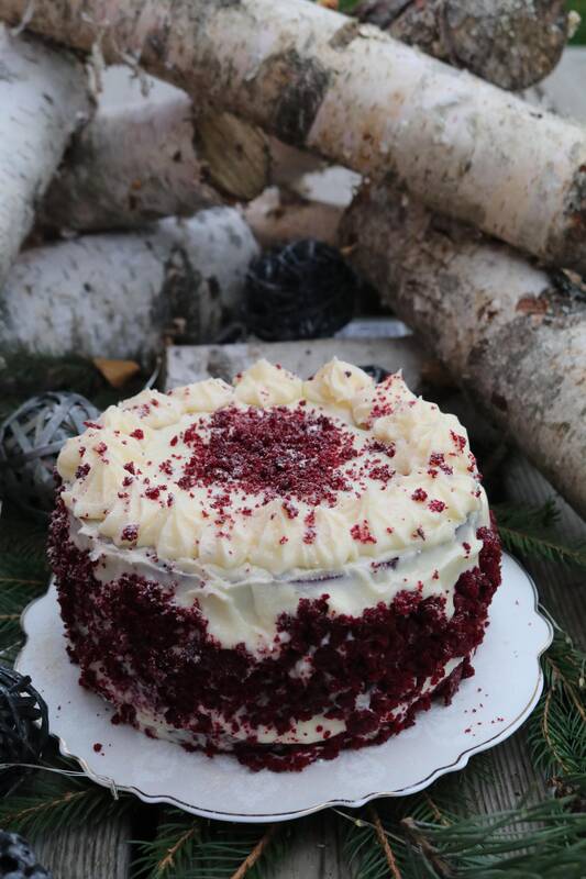 Įkaitinkite orkaitę iki 180 °C. Dvi 22 cm arba tris 16 cm skersmens torto kepimo formas ištepkite aliejumi. Įsitikinkite, kad šaldytuve laikomi ingredientai yra kambario temperatūros! Lengvai suplakite kiaušinius, aliejų, pasukas, actą, lydytą sviestą, vanilę ir maistinius dažus ir atidėkite į šalį. Kitame dubenyje sumaišykite miltus, cukrų, sodą, kakavos miltelius ir druską. Kiaušinių mišinį įmaišykite į miltų mišinį ir maišykite vidutiniu greičiu (jei naudojate plaktuvą) maždaug 1 min., kol jie susimaišys. Padalykite tešlą į pyrago formas ir kepkite apie 35–40 min. arba tol, kol įsmeigus į biskvitą dantų krapštuką jis bus švarus. Kreminio sūrio glaisto gaminimas. Kambario temperatūros sviestą sudėkite į maišytuvo su šluotelės priedu dubenį ir sudėję grietinėlės sūrį plakite, kol jis taps vientisas ir nebus gabalėlių. Dalimis pilkite persijotą miltelinį cukrų ir maišykite, kol viskas taps vientisa mase. Įpilkite apelsinų ekstrakto ir druskos. Pertepkite biskvito lakštus ir papuoškite. Nors šį pyragą galima tiekti iš karto, skaniausias jis pastovėjęs per naktį šaldytuve.