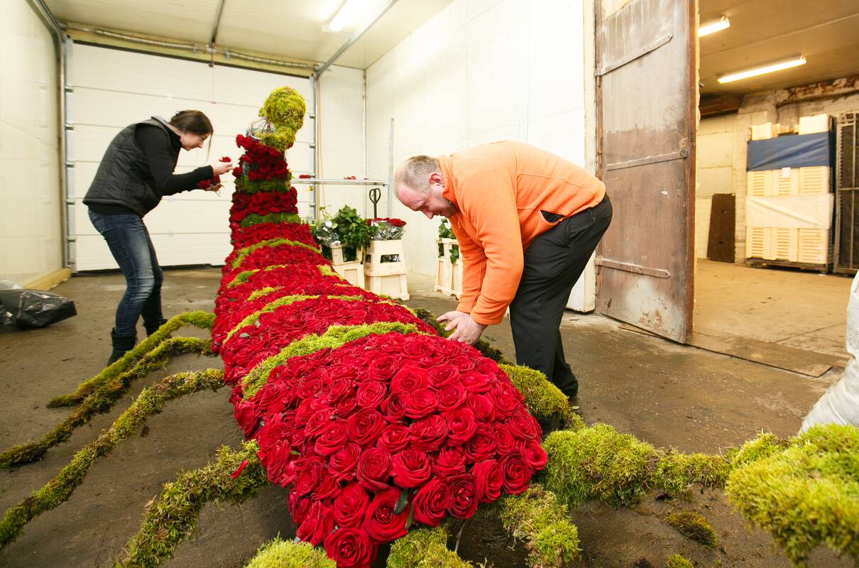 Skorpioną iš rožių M.Vasiliauskas kūrė dvi dienas.