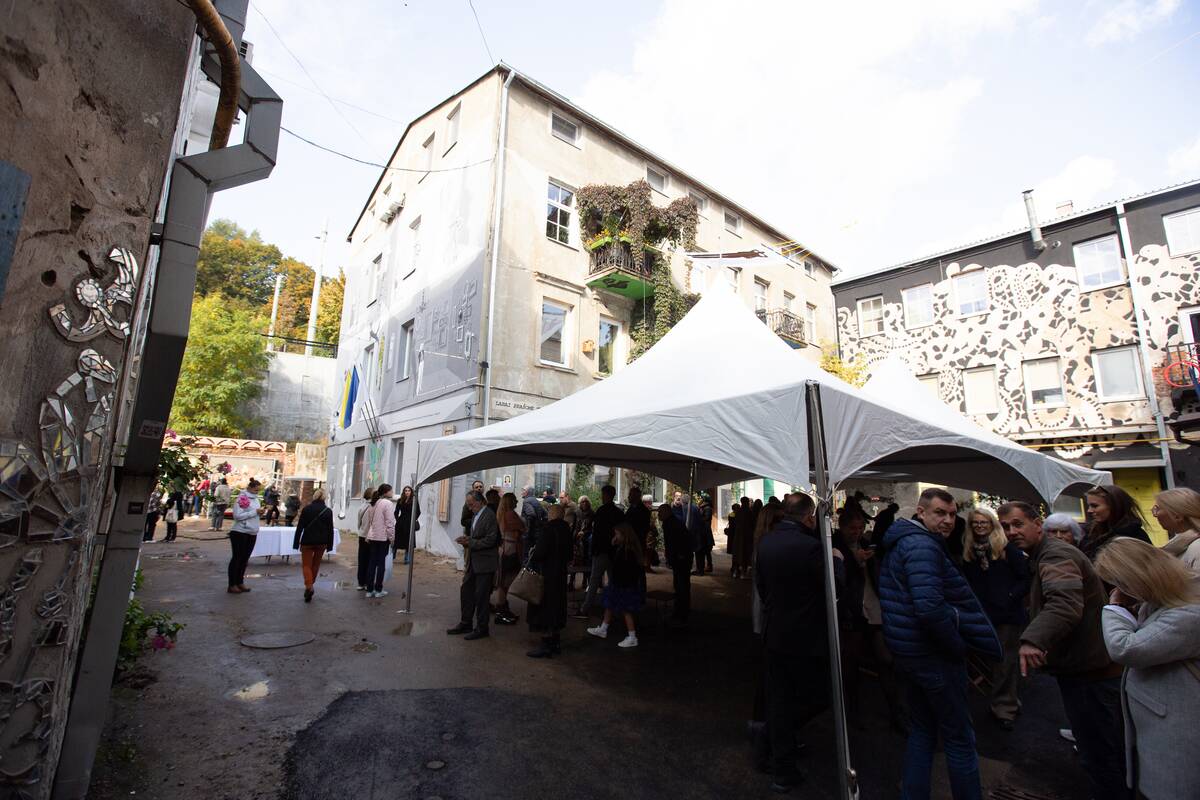 Kiemo galeriją puoselėja menininkas Vytenis Jakas, čia gausu jo kūrinių. Nuo šiol kiemelis saugos dar vieną istoriją, kaip čia žiedus sumainė menininko dukra Aita ir mylimasis Paulius. Tik įėjus į kiemelį pasitiko didelį palapinė, kurioje jaunųjų tuoktuvių šventės jau laukė svečiai.