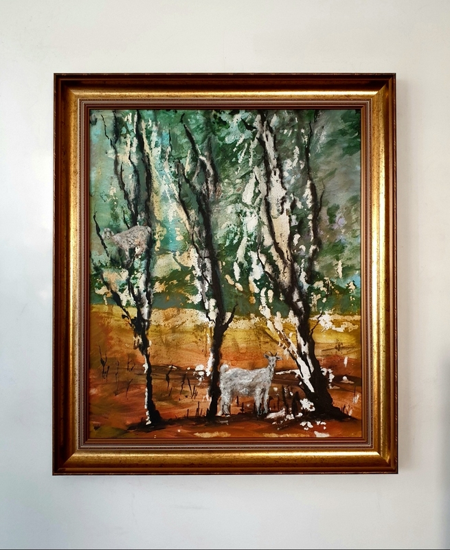 – Štai čia ir yra puikiausia iliustracija to, apie ką aš kalbėjau. Iš pradžių aš nutapiau medžius – nepatiko, lyg kažko trūko, lyg per vaikiška buvo. Tada paleidau avelę į medį pasiganyti – žmonėms patinka netikėtos detalės, kurias turi patys atrasti.