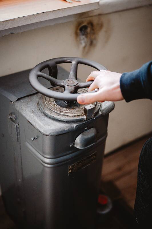 Jis pamena, kaip buvo remontuojami didieji 2 m diametro ratai, traukiantys lyną. „Buvome nuėmę tuos originalius šveicariškus ketaus ratus, remonto metu prie jų buvo pridėtos plokštės, kad galėtų tarnauti ilgiau, ir ratai vėl sugrąžinti į savo vietą“, – pridūrė pašnekovas.