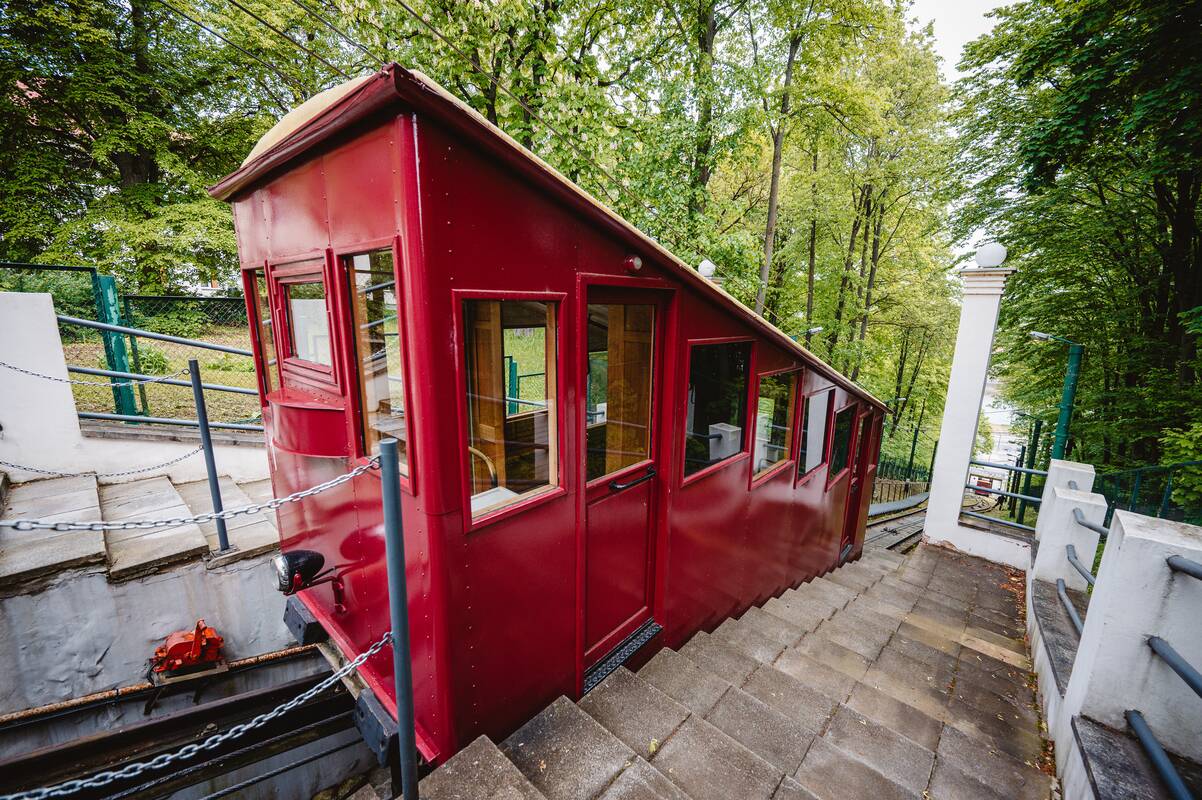 Įrenginys: kylant funikulieriumi galima pajusti istorinę tarpukario atmosferą. Tai kultūros paminklas, kurį galima liesti rankomis ir netgi juo važiuoti.
