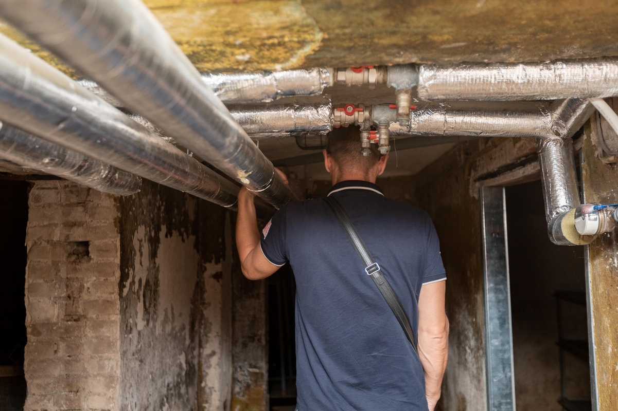 Kitas verslininkas aprodė, ką darbininkai pridirbo jo komercinėse patalpose. Seniau visi vamzdžiai buvo sienoje, o dabar jie iškelti į paviršių. Neaišku, kodėl jie negalėjo likti senosiose vietose, todėl savo lėšomis teks iš naujo atlikti apdailos darbus.