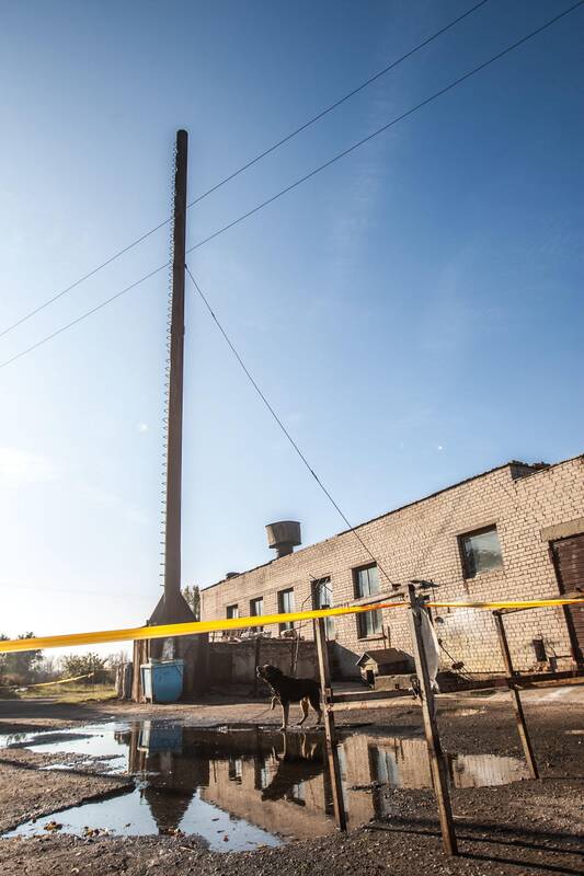 Tik įvažiavus į kiemą iškart į akis krito, kad Kauno moksleivių aplinkotyros centro kieme stūksantis kaminas yra aptvertas "Stop" juosta. Prie būdos pririšto šuns pavadėlis tokio ilgio, kad pasiektų kiekvieną "Stop" juostą peržengusį žmogų.