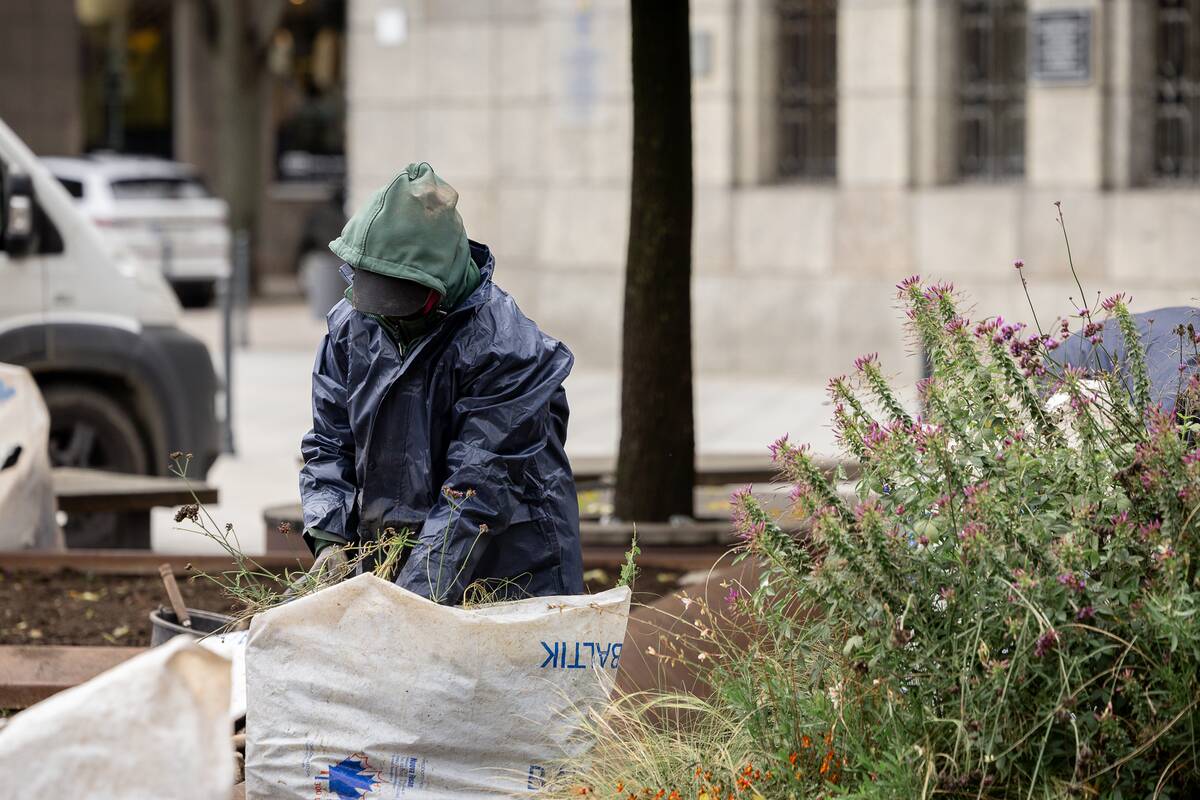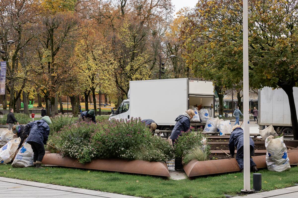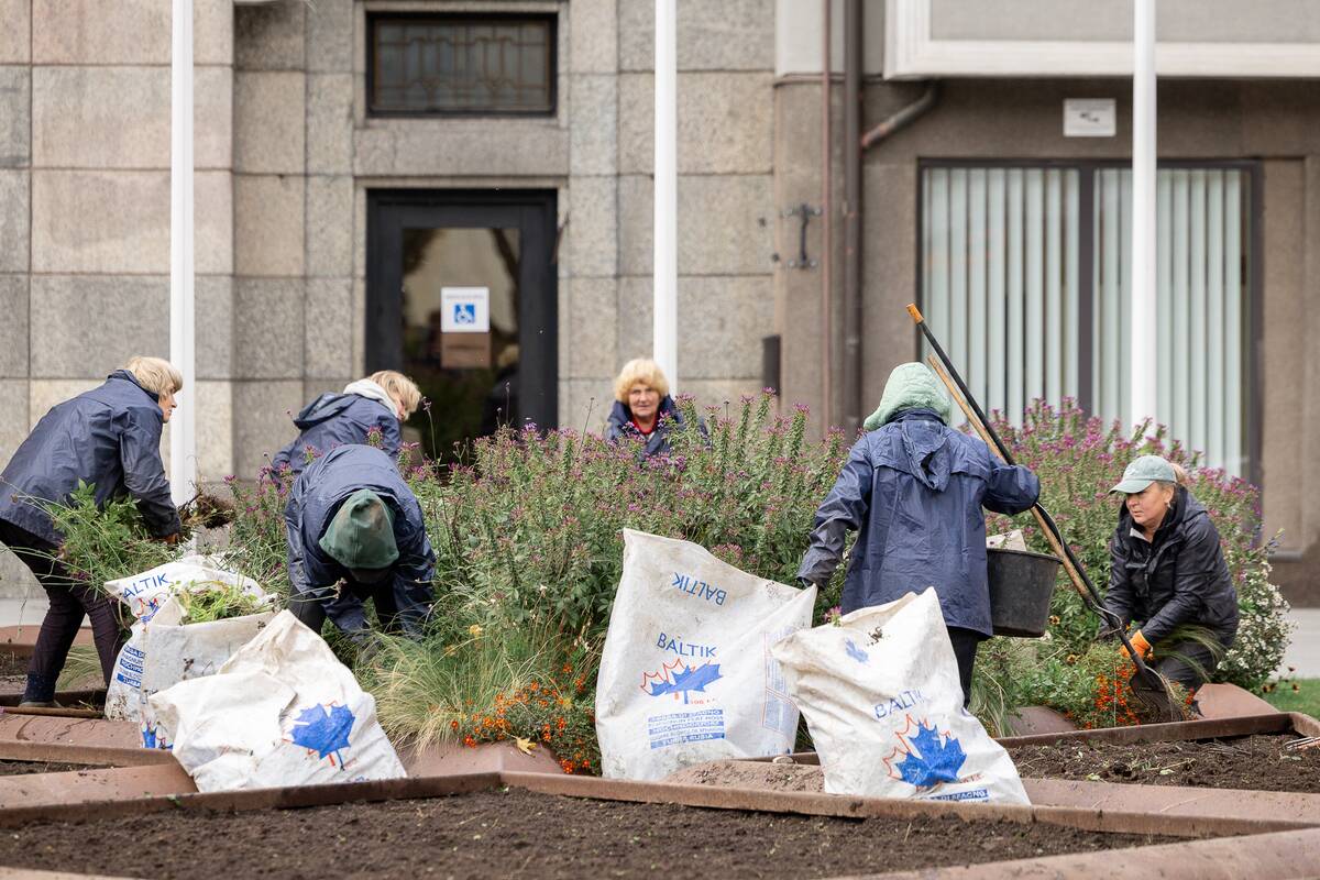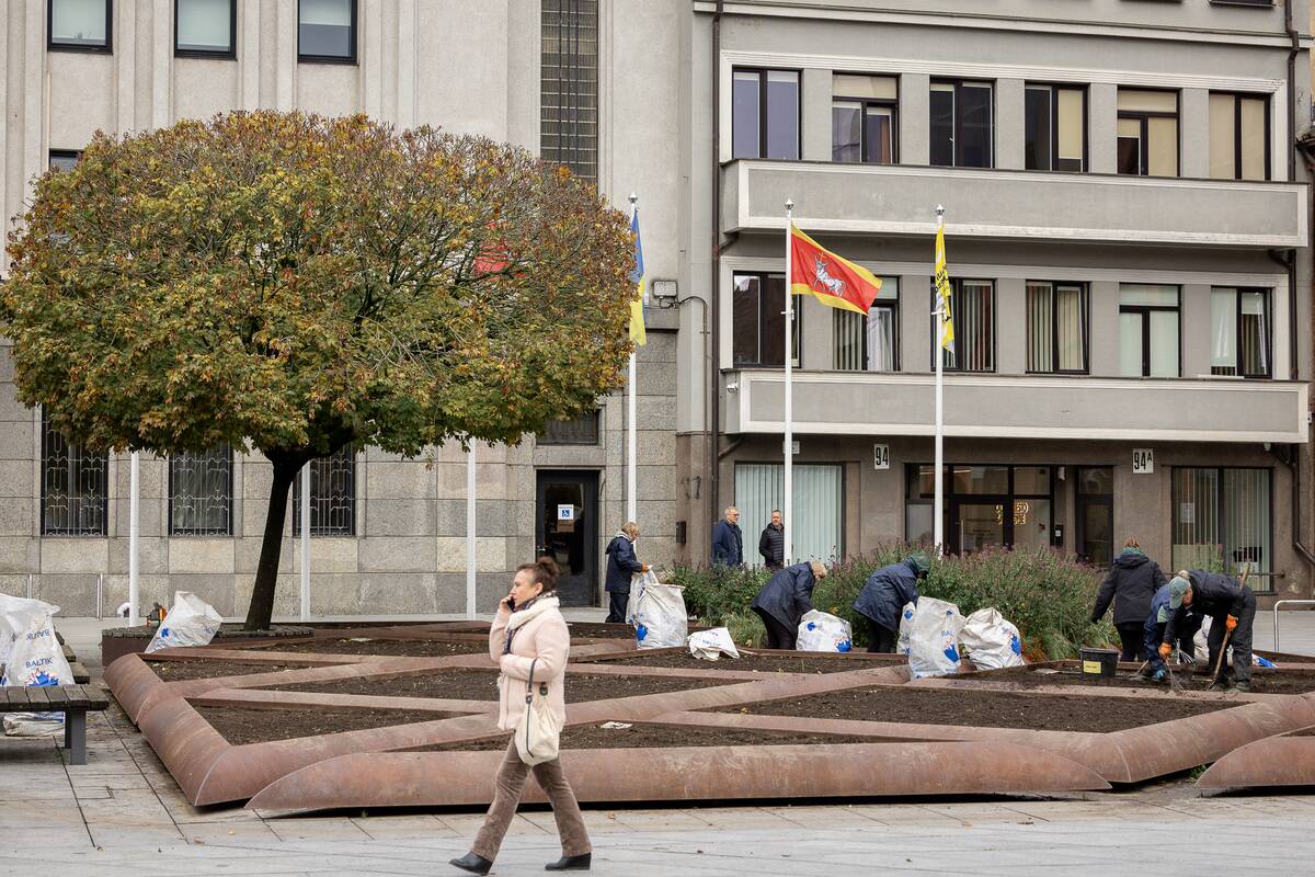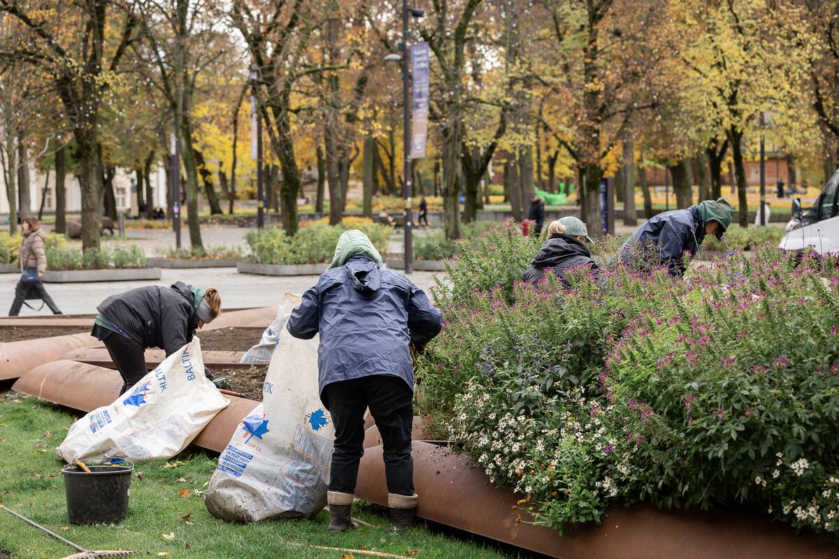 Miesto gėlynai jau ruošiami žiemai, darbininkai nuėmė dar ką tik žaliavusius ir žiedais džiuginusius želdinius. Dabar gėlių klombos kurį laiką liks tuščios.