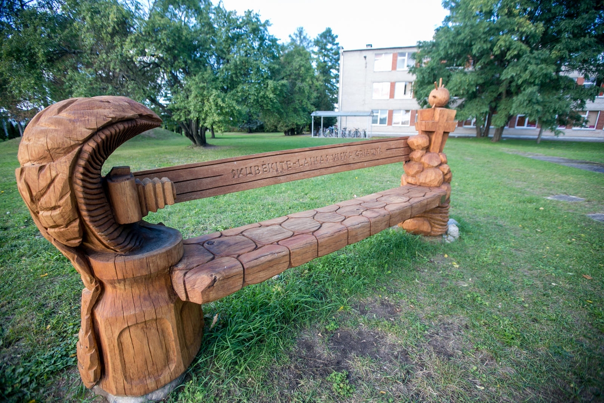 "Nusprendėme, kad gimnazijos sodas turėtų tarnauti bendruomenei, tapti jos traukos vieta. Pakvietėme geriausius medžio drožėjus į plenerą. Jų sukurti informatyvūs ir vizualiai patrauklūs suoliukai tapo parko pradžia. Esame laimėję projektą – ruošiamės įrengti visai Karmėlavos bendruomenei atvirą parką", – pasakojo R.Kuktienė.