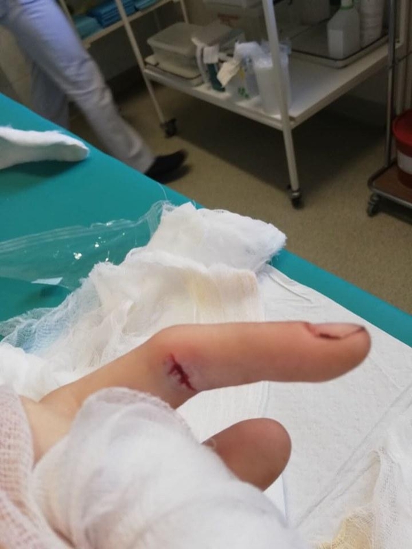 Namo iš Kauno klinikų ji buvo išleista su beveik iki pusės dešinės rankos sugipsuotais dviem pirštais. Taip kaunietė turės praleisti dvi savaites, kol bus išimti medicininiai siūlai, gydantys žaizdas.