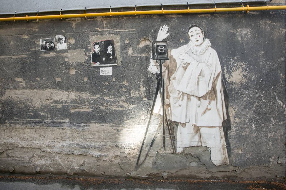 Pirmiausiai ant jos atsirado V.Jako viso ūgio portretas, vėliau dar du: pirmojo aukšto gyventojos Reginos tėvelio Petro vaikystės atvaizdas ir kiemo senbuvės Svietos figūra, su beranke Milo Venera pašonėje.