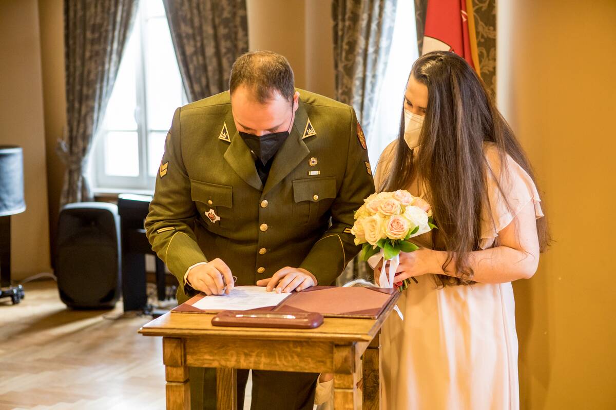 „Vyras kariškis. Nežinome, kaip visi įvykiai toliau klostysis, todėl radę laiko šiandien nusprendėme susituokti“, – kalbinta nuotaka tikino, kad kai meilė stipri, ceremonijos vieta lieka paskutinėje vietoje.