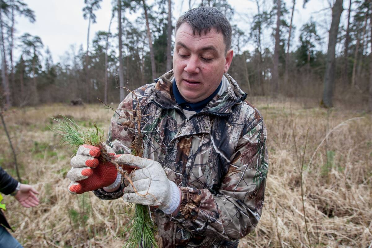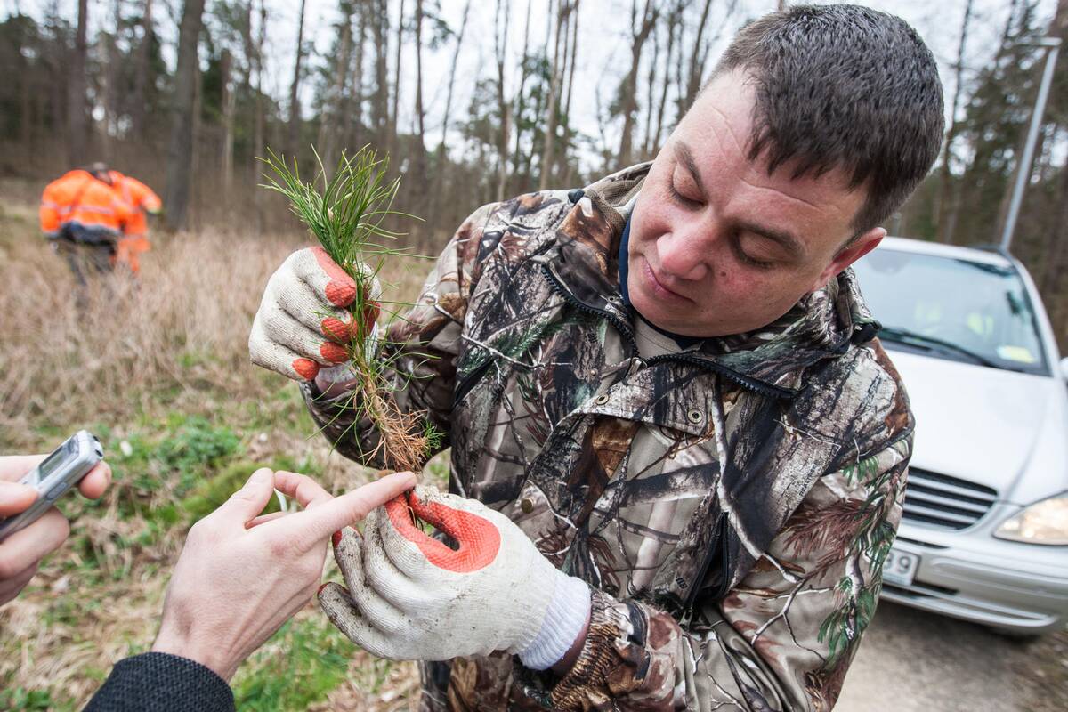 Per savo gyvenime daugiau nei 50 tūkstančių medžių pasodinęs miškininkas, "Kauno gatvių apšvietimas" želdinių priežiūros skyriaus darbų vadovas Robertas Butkevičius ištiesė saują dar gležnų pušelių.