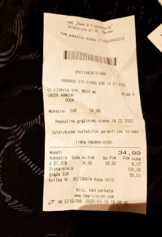 Sausio viduryje apsipirkti į parduotuvę „Peek & Cloppenburg“ Kaune užsukusi pora išsirinko norimą prekę, tačiau priėję prie kasos susimokėti už pirkinį, sužinojo, kad piniginę teks paploninti daugiau nei planuota. Vėliau ne mažiau pribloškė ir darbuotojų paaiškinimas, kodėl kaina – didesnė, o čekyje pažymėtas visai kitos rūšies pirkinys nei įsigyta.