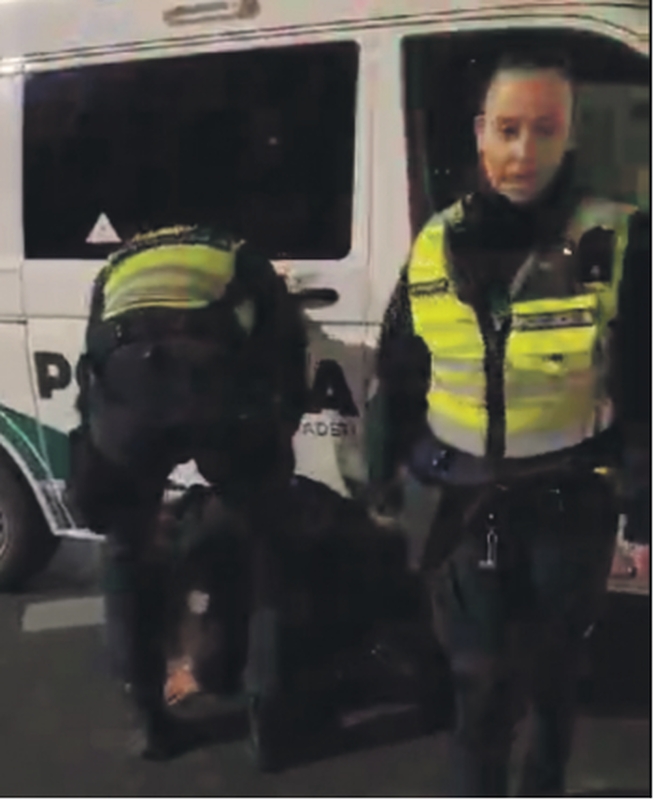 Toli gražu ne iš karto pareigūnas pakelia moterį. Girdėti, kad atvyksta policijos pastiprinimas, moteris nuvedama į atvykusio pareigūnų ekipažo automobilį. „Kai kvietė pastiprinimą, girdėjau, kad sakė: „Trys agresyviai nusiteikę.“ Tai tas praeivis irgi buvo agresyviai nusiteikęs, nes filmavo?“ – retoriškai klausė S. Mingailienė.