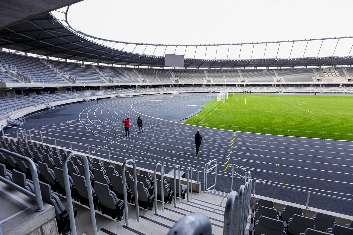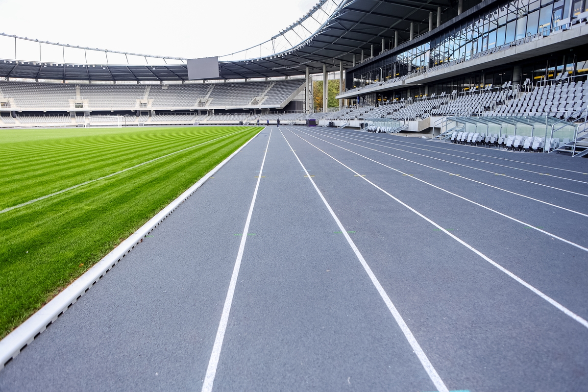 Po „susiūta“ hibridine aikšte išvedžiota 33 km šildymo vamzdelių, kad žalia veja išliktų gyvybinga visais metų sezonais. Greta – šildomos kėdės komandų atstovams, bėgimo takai lengvaatlečiams, disko ir kūjo metimo sektoriai ir šuolio rungčių įrenginiai.