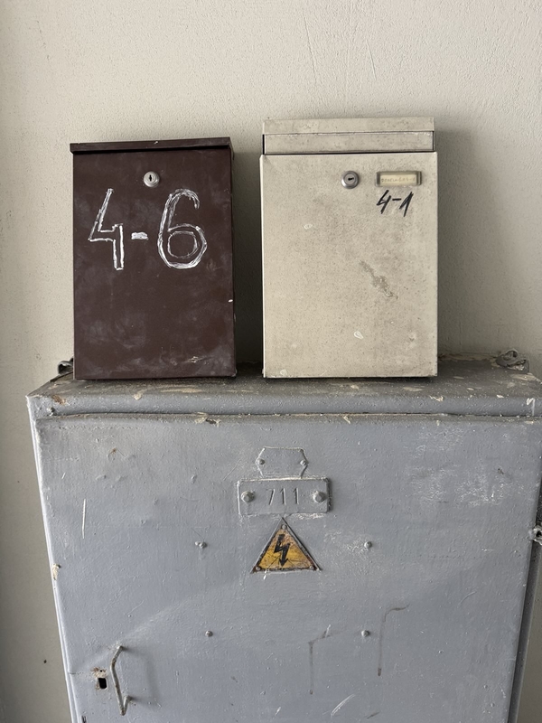 Tarpuvartėje tarp 4-ojo ir 6-ojo namo buvo sukabintos abiejų namų pašto dėžutės. Formaliai žiūrint, K. Donelaičio g. 4-ojo namo gyventojų dėžutės buvo pakabintos ant 6-ojo namo sienos. Tvarkant šį pastatą dėžutės buvo nuimtos, tačiau atgal jų niekas nesiteikė pakabinti ir jos buvo tiesiog numestos nuošaliau.