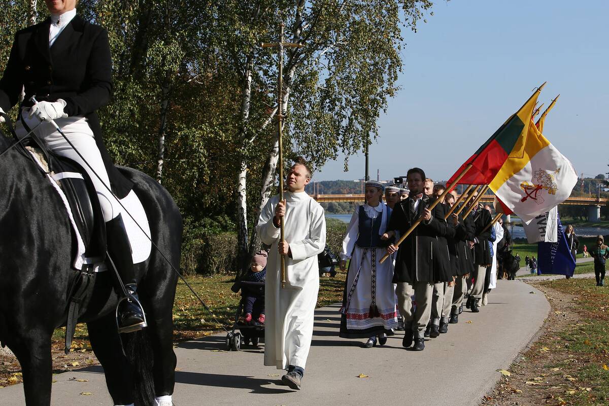 Ne tokie ramūs ar per dideli, kaip pavyzdžiui, iš Alšėnų atvykęs žirgas Pikaso, buriavosi prie bažnyčios, laukdami šventinės eisenos. „Atėjome palaiminimo ir pristatyti savo žirgyną“, - Kristiną į šventę atlydėjo ne tik šešiametis žirgas, vedamas dviejų žirgyno trenerių, bet ir rudas pudelis. Anot moters, ant Pikaso jodinėja vaikai, žirgas labai draugiškas, todėl dalyvauti eisenoje su juo – jokių problemų.