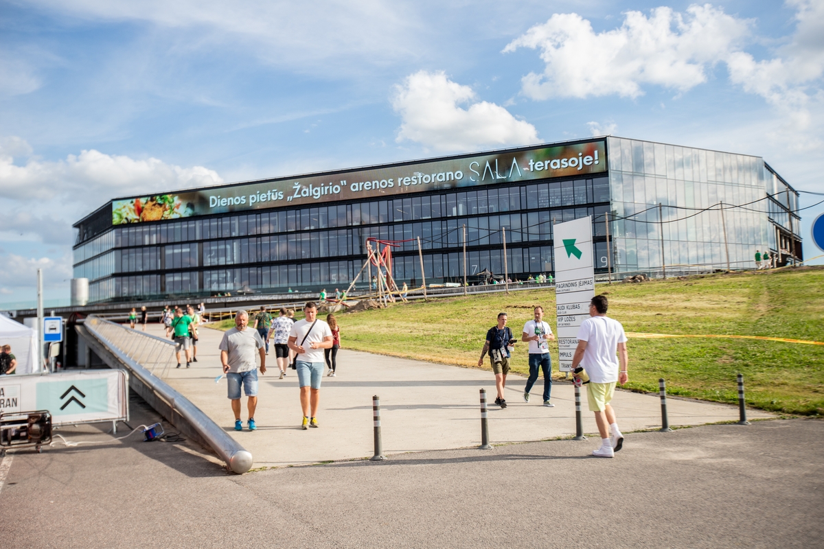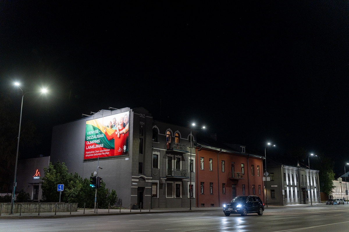Agresyvu: „Žalgirio“ arenos reklama ryškiai matoma bet kuriuo paros metu. / Justinos Lasauskaitės nuotr.
