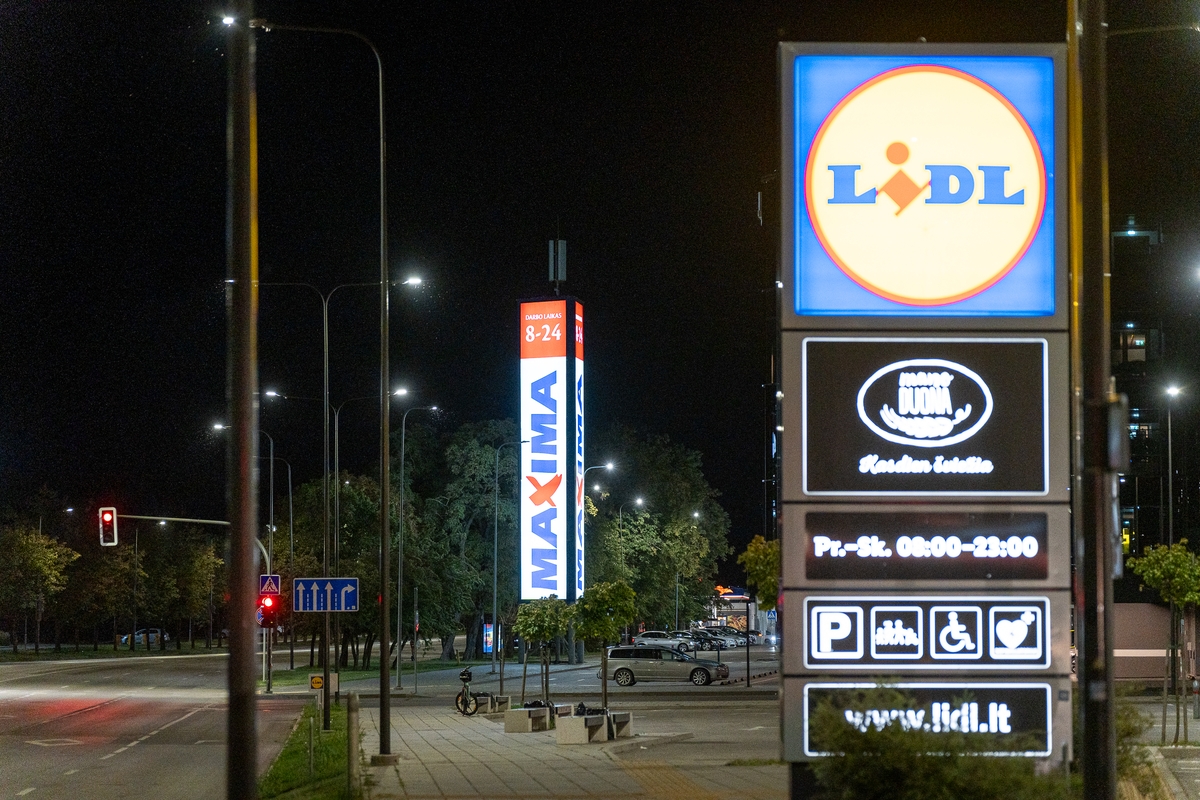 Tarša: įvairūs verslai naktimis įjungia papildomų šviesos šaltinių. / Regimanto Zakšensko nuotr.