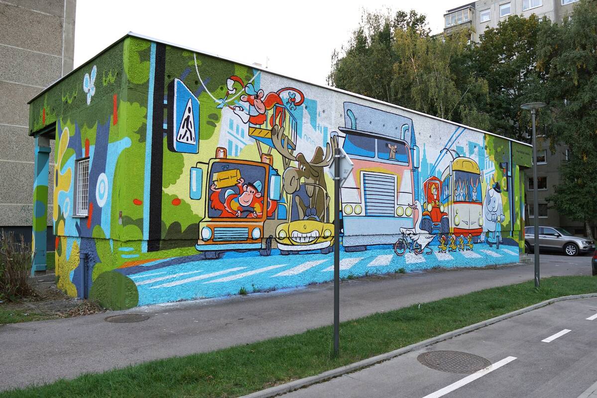 Freskose pavaizduotas miestas, kuriame gyvūnai – vaikams pažįstami ir draugiški personažai – atsakingai elgiasi eisme: praleidžia pėsčiuosius, vadovaujasi kelio ženklais ir rodo gerą pavyzdį kitiems“, – pažymėjo Kauno savivaldybės atstovai.
