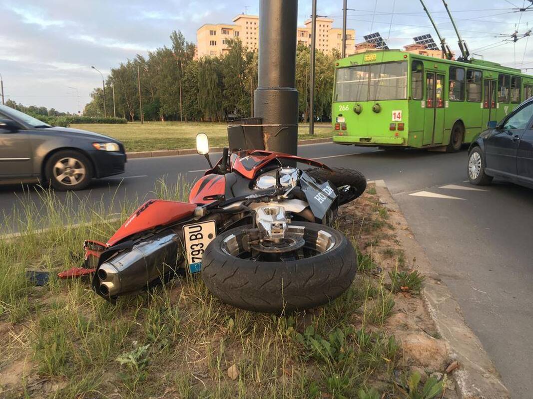 Šiaurės prospekto ir S.Žukausko gatvės žiedinėje sankryžoje motociklo vairuotojas nesuvaldė savo transporto priemonės ir rėžėsi į stulpą.