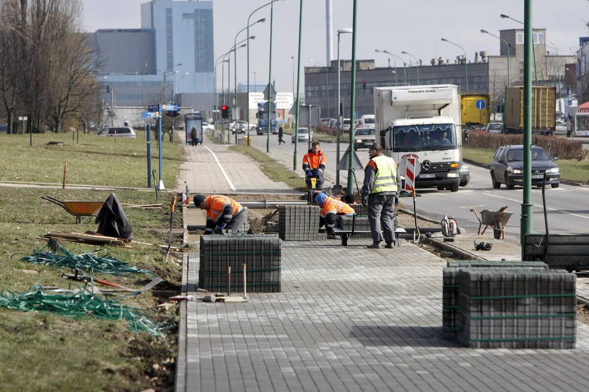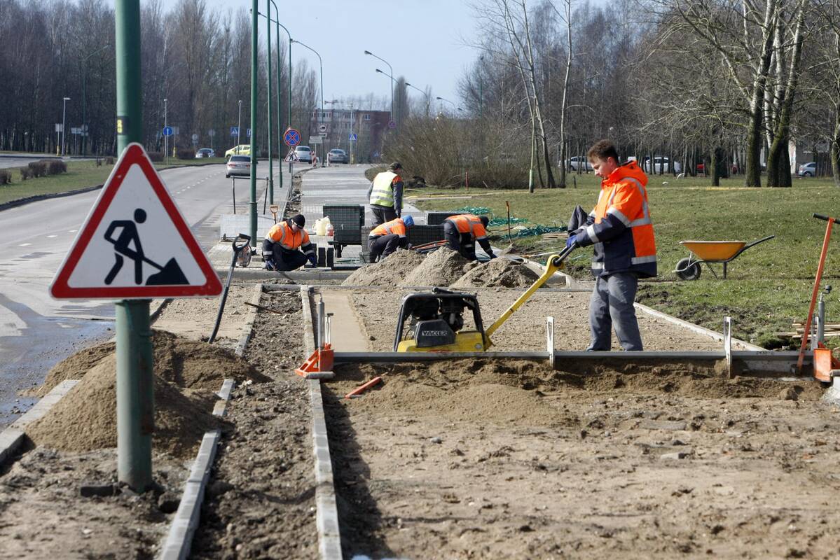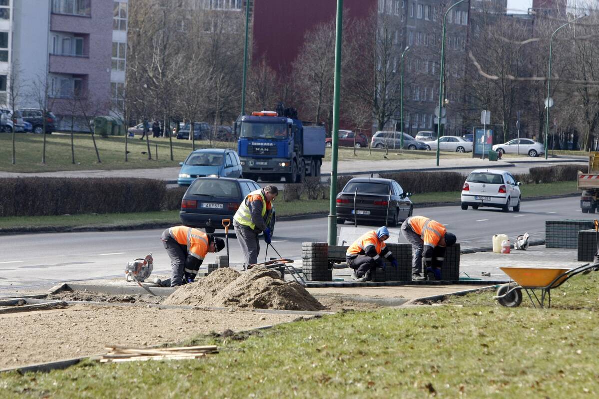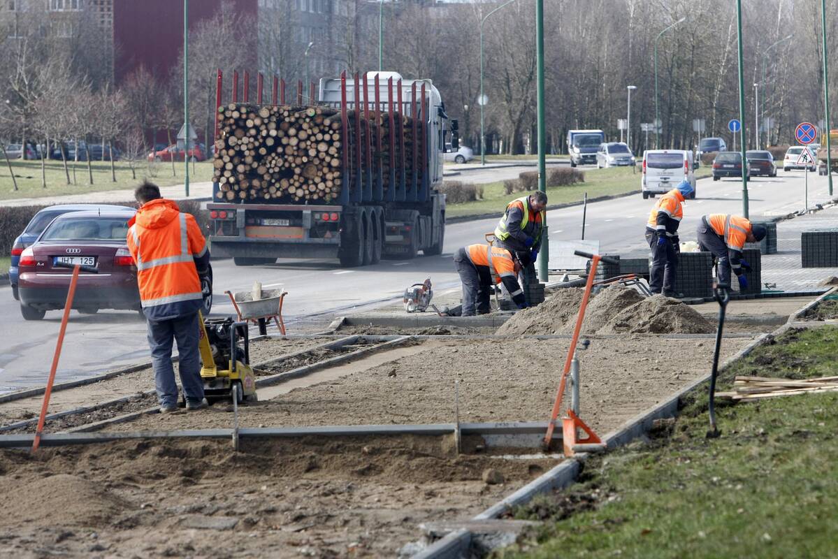 Statybininkų prospekto dalyje šaligatvis bus iškeltas, suformuotas nuolydis, kad vanduo nubėgtų į gatvės pusę ir nesikauptų. Be to, senos trinkelės bus keičiamos naujomis.