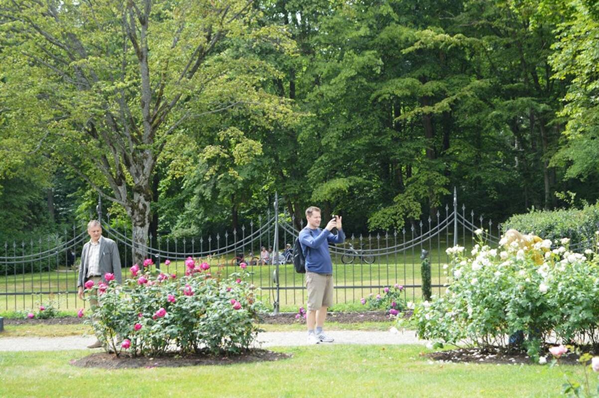 Virginija ne tik rūpinasi įspūdingais gėlynais, bet ir mielai atsako į parko lankytojų klausimus. Konsultacijų prašoma įvairių. „Dažnai kalbina žmonės, ypač tuo laiku, kai reikia dengti, pakirpti rožes. Taip pat domisi, kokiomis trąšomis tręšiame šias gėles, kad jos taip gausiai žydi“, - kalbėjo V. Kniežienė. Itin rožių priežiūra domisi užsieniečiai – sustoja prie kiekvieno krūmo, skaito pavadinimą, užduoda gausybę klausimų.