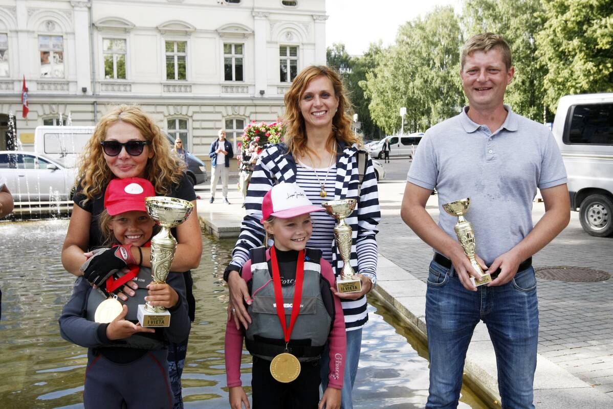 Renginį vainikavo laimėtojų apdovanojimai ir sena buriuotojų tradicija – regatos nugalėtojos maudynės Dangės upėje.