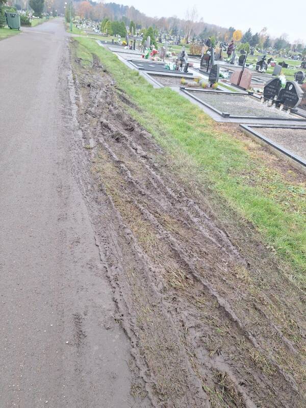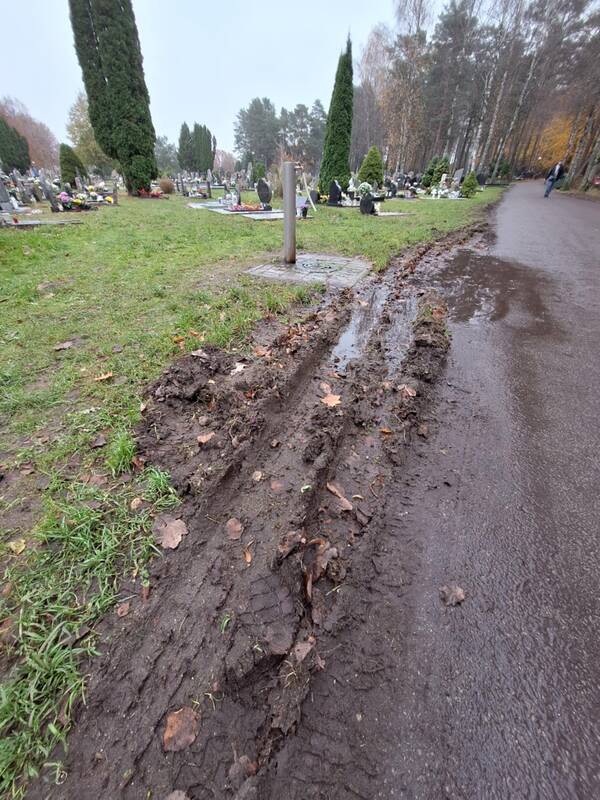 „Prieš šventes į kapines buvo didelis srautas. Neribojamas įvažiavimas neįgaliesiems ir asmenims virš 75-erių. Atvažiuoja žmonės mašina, pasistato take automobilį, o kiti jau negali siauru taku pravažiuoti, aplenkia stovinčią mašiną žolynu. Todėl ir išvažinėtos taip žaliosios zonos“, – tikino D. Breivė.
