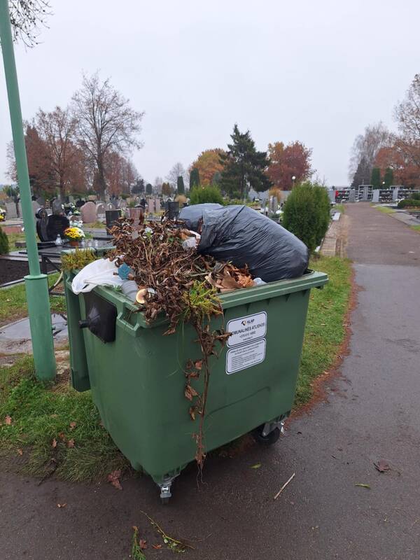 „Žmonės kapinėse nerūšiuoja, nieko neįmanoma padaryti. Surenka lapus ir žoles, sudeda į plastikinius maišus ir meta į konteinerį. Žaliųjų atliekų surinkėjai nepriima tokių atliekų, nes jos su plastiku“, – patikino D. Breivė.