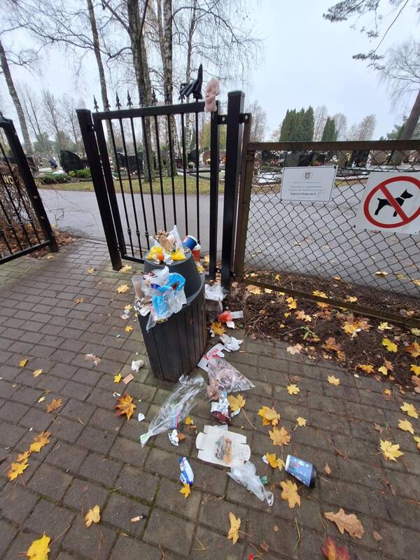 Atliekos: atvykėliai pasipiktino perpildytomis šiukšliadėžėmis, nors matyti, kad jose daugiausia – greitojo maisto, gėrimų ir plastiko pakuotės. Provėžos: artimųjų kapus atvykusius aplankyti žmones pribloškė išvažinėtos žaliosios zonos.