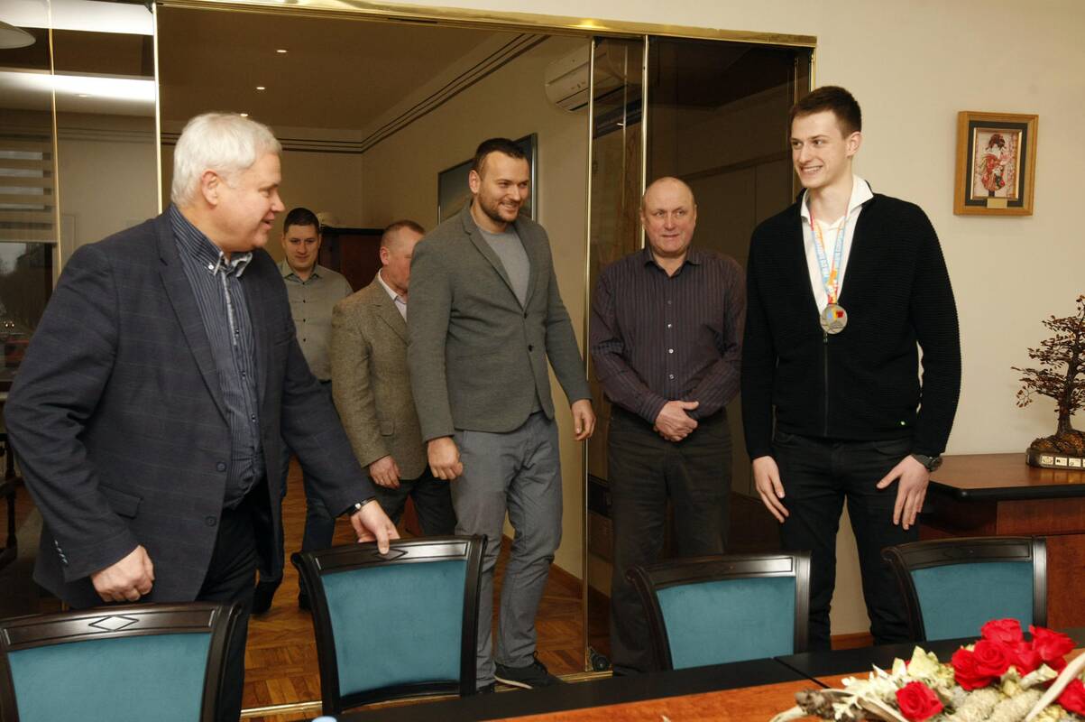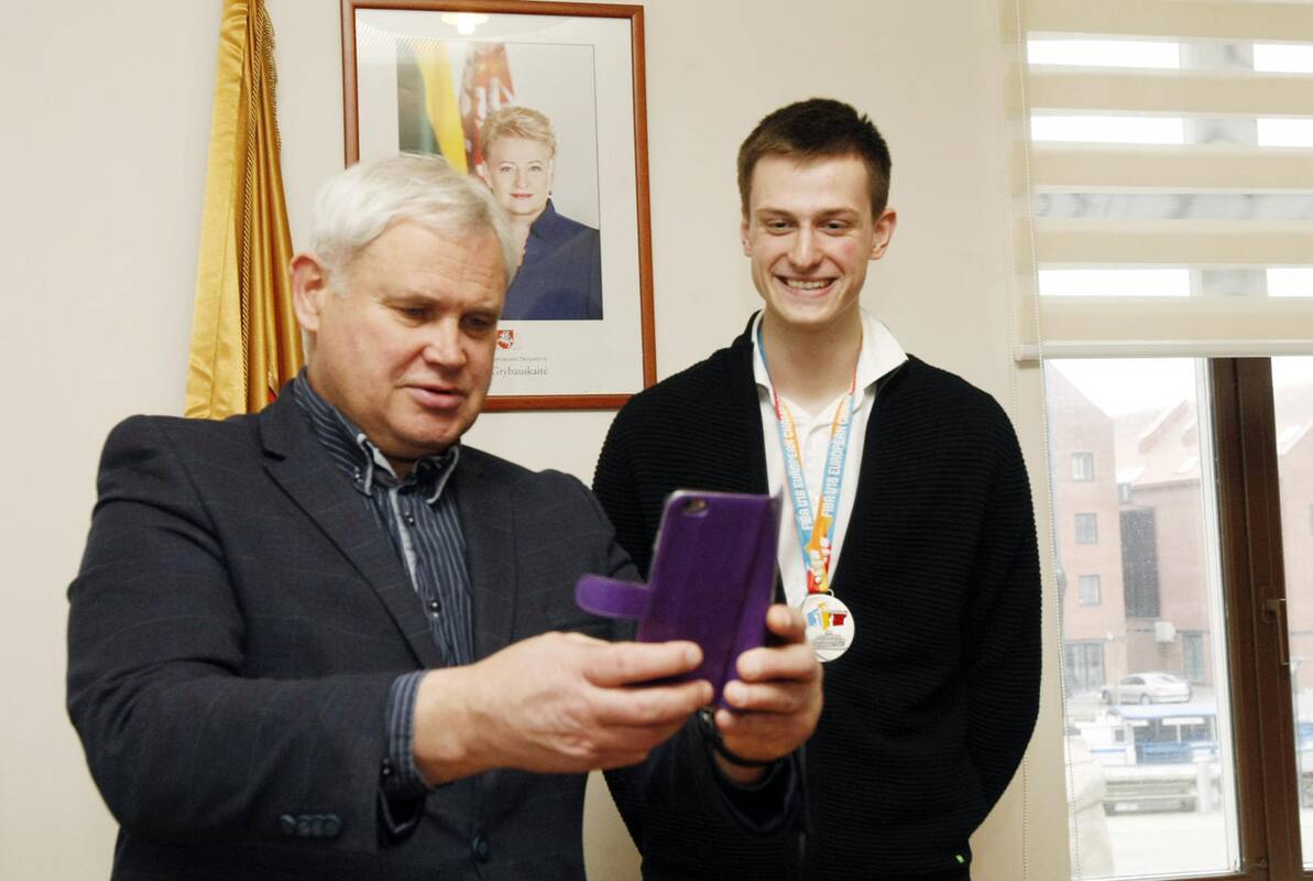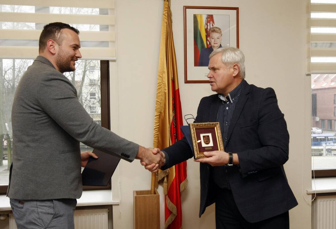 V.Grubliauskas palinkėjo vicečempionui gero sezono Nacionalinės krepšinio lygos pirmenybėse, taip pat sėkmingai baigti Vytauto Didžiojo gimnaziją, kurioje mokslo šaknis kremta taikliarankis. Meras V.Slavinskui pasiūlė po vidurinių mokslų neskleisti sparnų kur nors, o likti studijuoti Klaipėdoje.