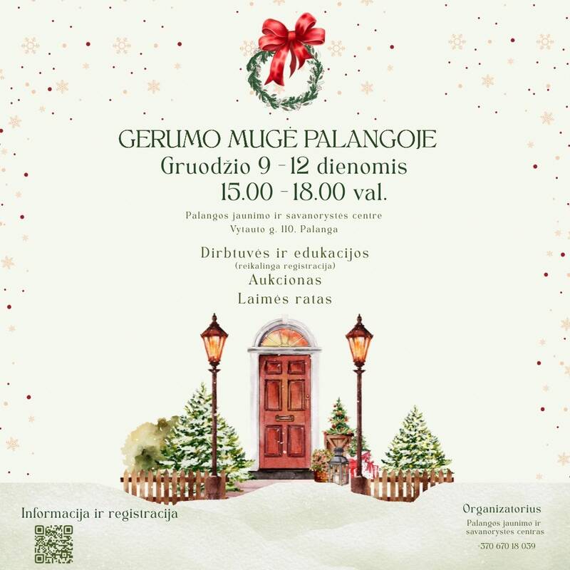 Šią savaitę, gruodžio 9–12 dienomis, Palangos jaunimo ir savanorystės centre apsilankyti vėl kviečia Gerumo mugė – ypatinga tradicija, kai miesto bendruomenė susitelkia tam, kad kartu sukurtų tikrų kalėdinių stebuklų. Tai – metas, kai geri darbai ne tik sušildo širdis, bet ir tampa labai reali pagalba tiems, kuriems jos dabar labiausiai reikia.