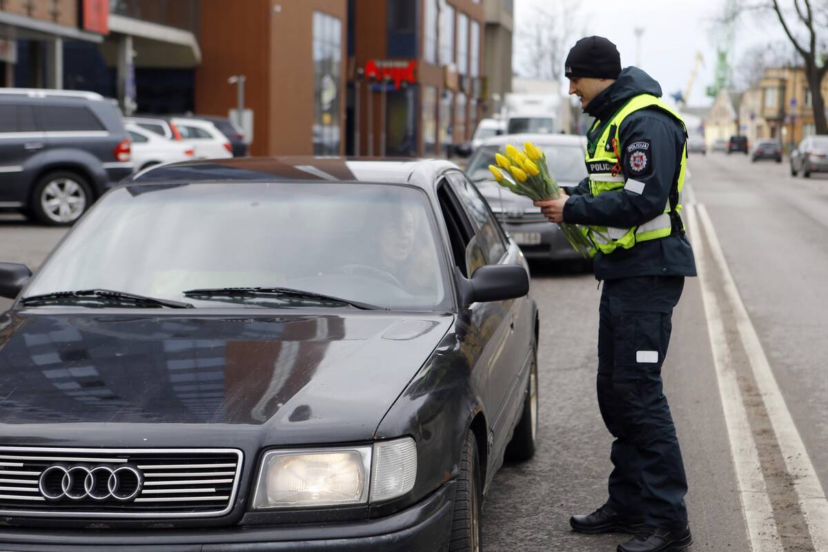 Moterų tradiciškai nepamiršo ir uostamiesčio pareigūnai. Kovo 8-osios proga Klaipėdos kelių policijos tarnybos ekipažai pasveikino apie 200 dailiosios lyties atstovių.