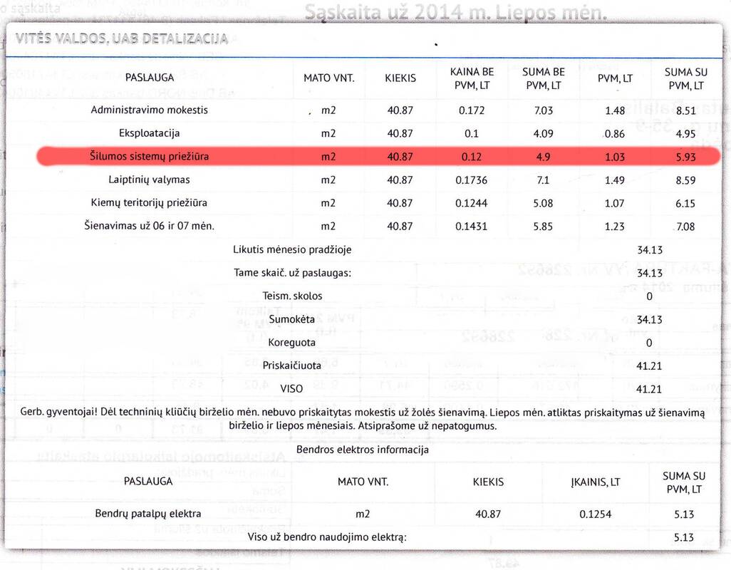 Anot M.Trubilos, bendrovė "Lamberta" gyventojams sąskaitas už šildymo ir karšto vandens sistemos priežiūrą pateikia, nes realiai ji atlieka pagrindinius darbus.