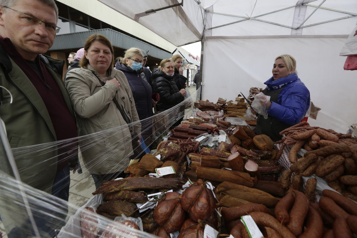 Nemažos eilės klaipėdiečių būriavosi prie mėsos gaminių.