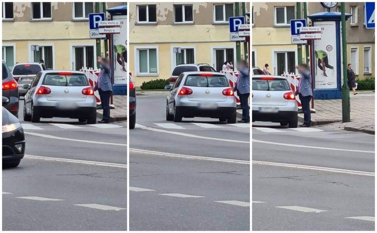 Į autobusų stotelę prie turgavietės skubėjusi moteris pamatė kitapus gatvės keistai besielgiantį lengvojo automobilio vairuotoją ir keleivį.