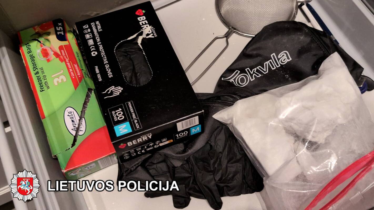 Atlikę kratą sulaikytojo gyvenamojoje vietoje, pareigūnai rado, kaip įtariama, didelį kiekį (apie 2 kg) narkotinės medžiagos – kokaino, dopingo medžiagų, vakuumavimo aparatą bei dvejas svarstykles. Paimtų kvaišalų kaina nelegalioje rinkoje gali siekti 200 000 eurų.
