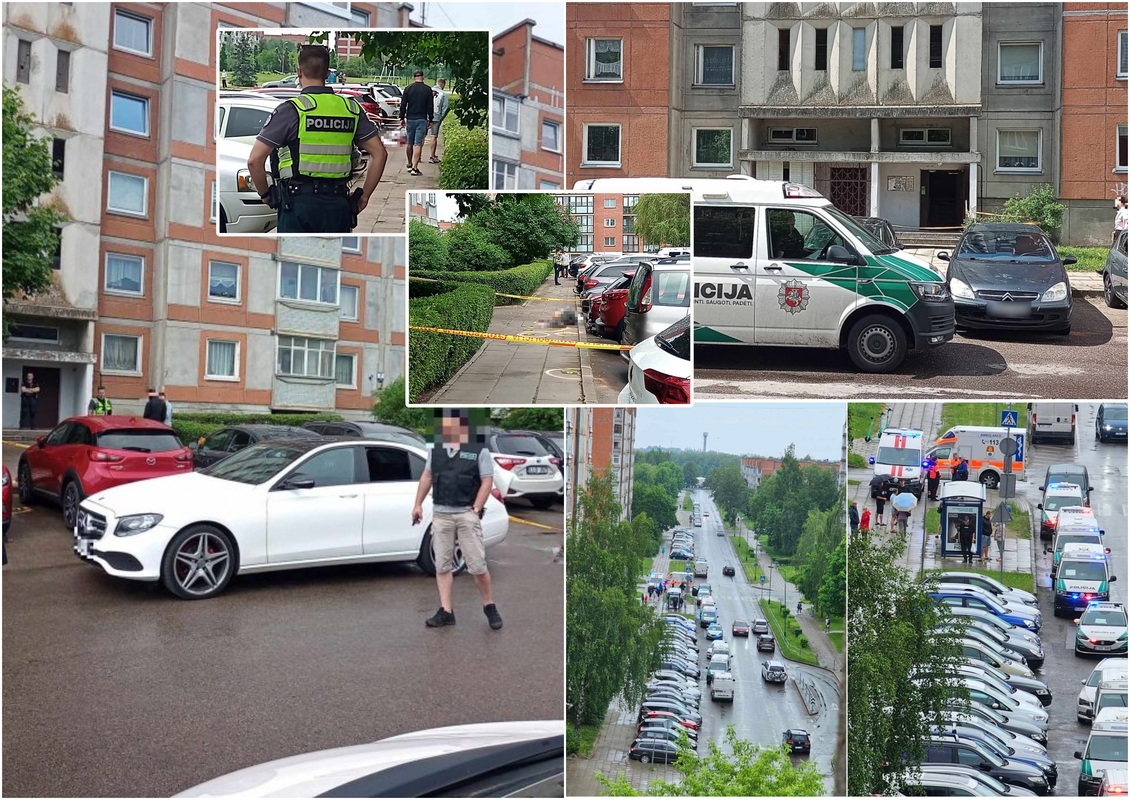 Nuotraukose, pasidalytose socialiniame tinkle, matyti, kad lavonas buvo uždengtas baltu audeklu, o daugiabučio teritorija aptverta „stop“ juosta.