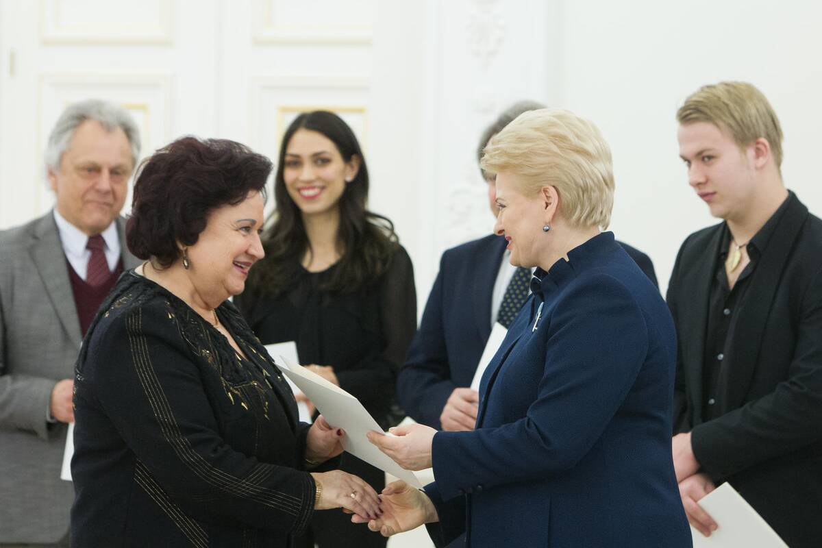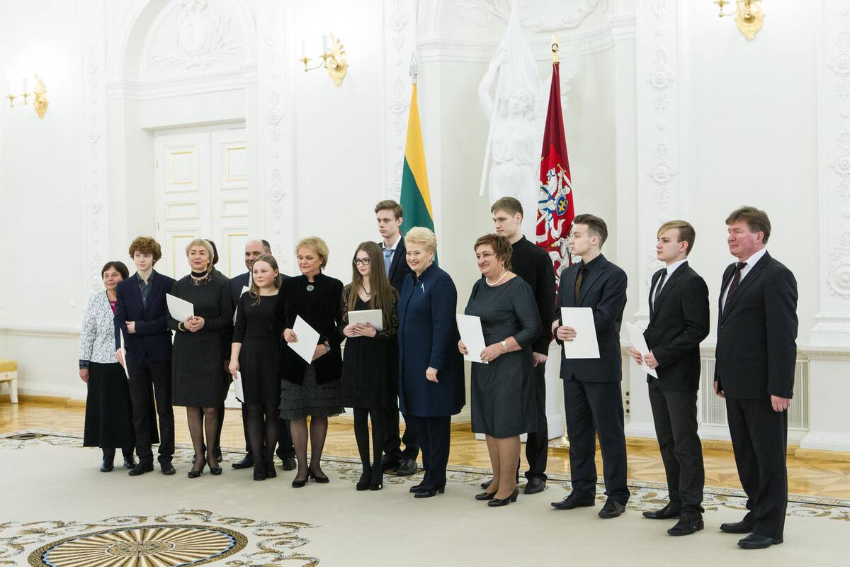 Lietuvos prezidentė Dalia Grybauskaitė įteikė padėkos raštus prizines vietas tarptautiniuose konkursuose iškovojusius Lietuvos muzikantus.