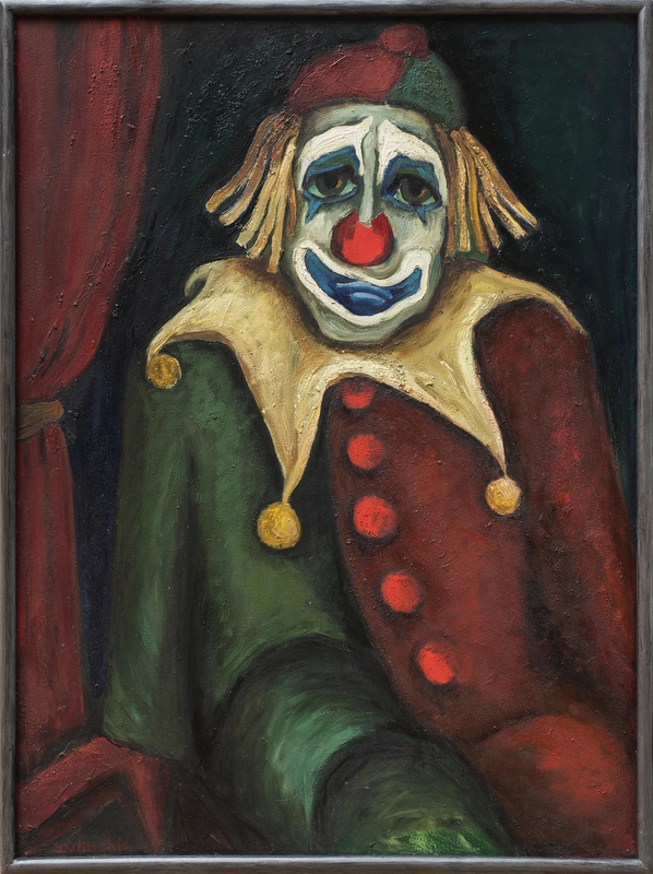 Ta pati šio motyvo interpretacija yra pratęsiama darbe "Klounas" (1990 m.), kuriame yra ryškinamas savojo personažo istoriškumas ir jo kaita, polemizuojama su kultūrine tradicija, pateikiama nuolatinio netikrumo, gyvenimo iliuzijos tema.