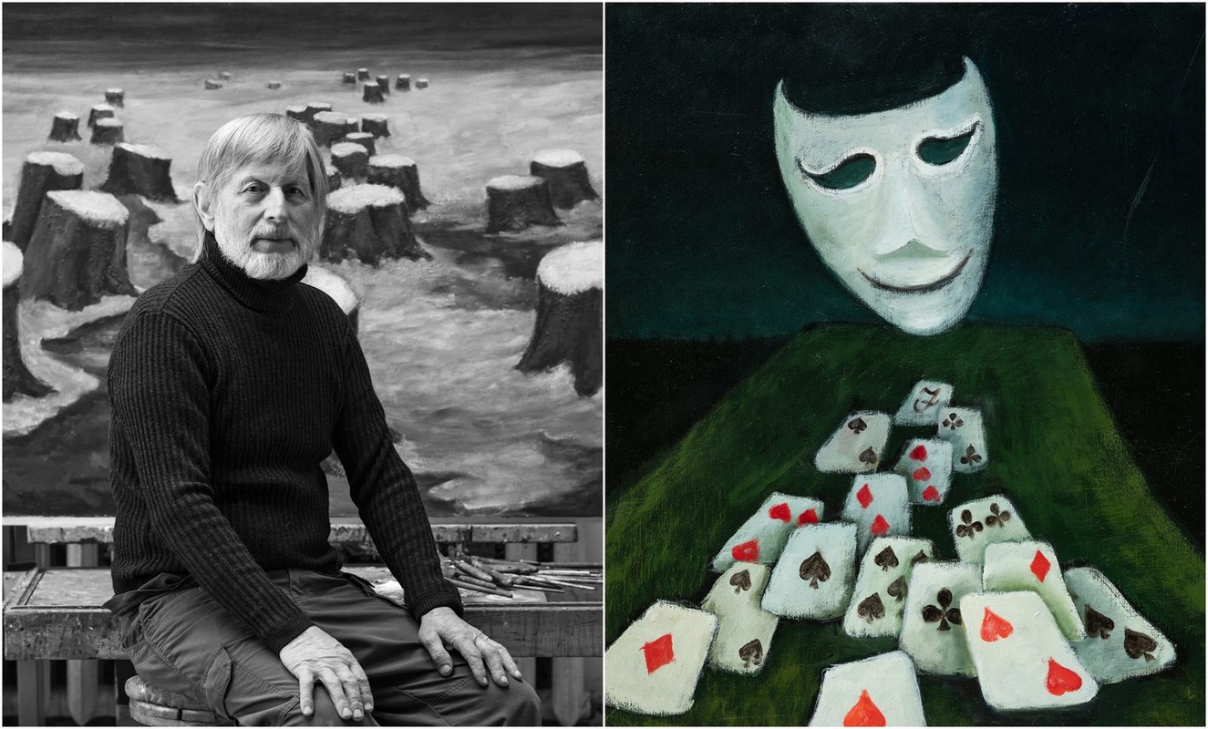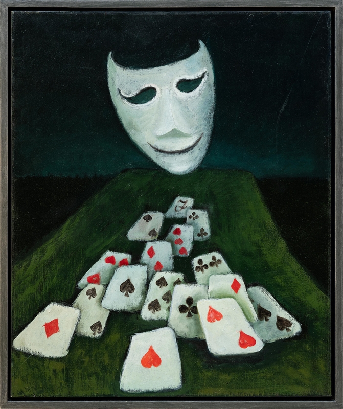 Darbe "Kortos su kauke" (2006 m.) dominuoja tapytojo mėgstamas kaukės įvaizdis, kuris šiame darbe yra pateikiamas kaip simbolis, išreiškiantis ironišką autoriaus požiūrį į aplinką kaip gyvenimo iliuziją, netikrumą kaip egzistencijos pagrindą. Šis darbas tarsi pratęsia kaukės, klouno, arlekino temą, išryškindamas žmogaus vienatvę ir jo egzistencijos laikinumą, kada vienintelis išlikimo garantas yra slėpimasis po kauke, prisiimtas vaidmuo, gyvenimas užribyje.