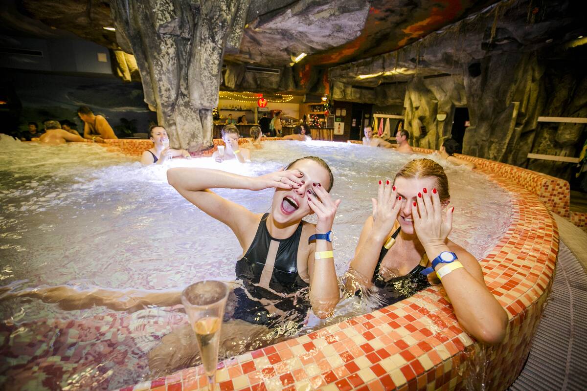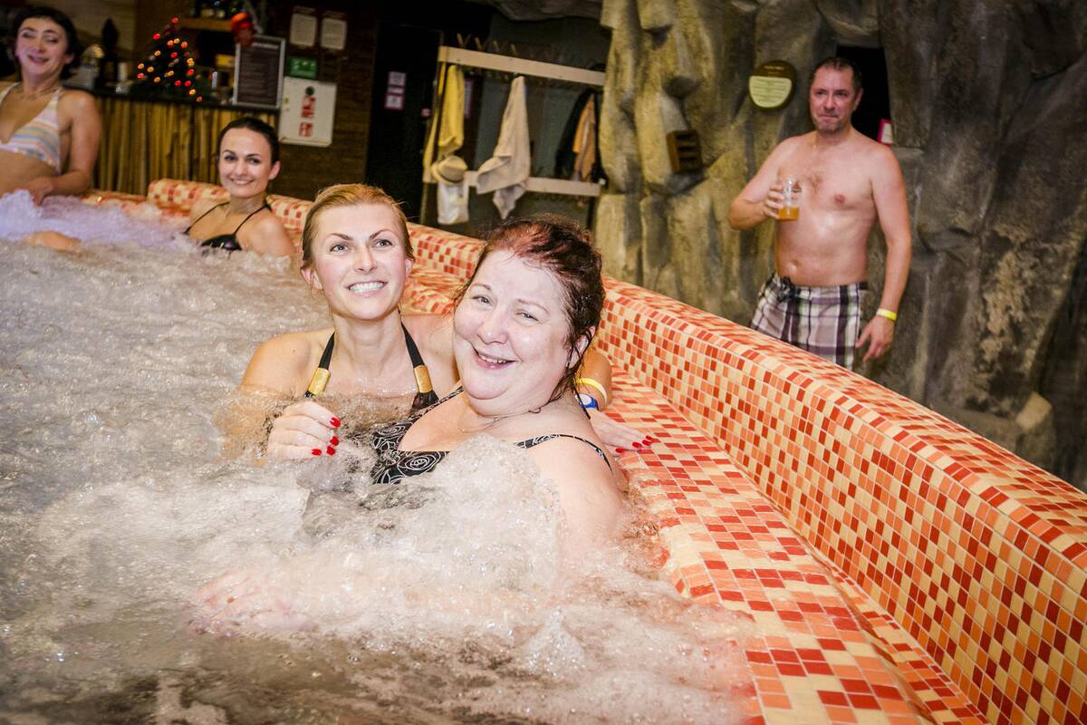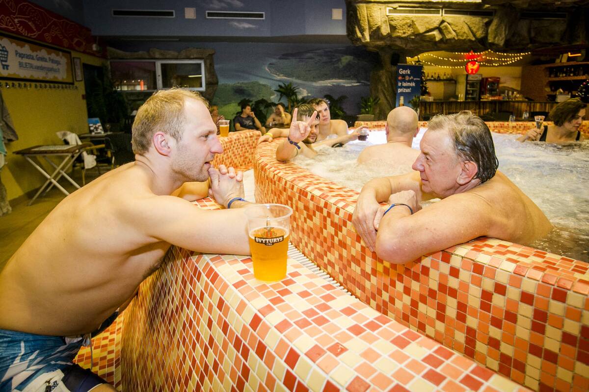 Viršutinius rūbus nusimetę, vandens pramogų parke esančiame pirčių komplekse atsipalaidavę aktoriai mėgavosi ne tik vienas kito draugija, bet ir sukūrinės vonios bei pirčių teikiamais malonumais.