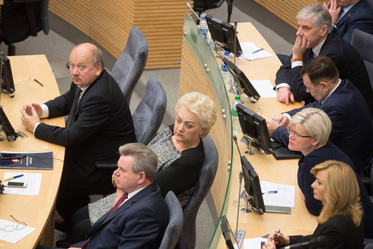Seimas praėjusią savaitę priėmė svarstyti pataisas, kuriomis siūloma iki 2017 metų liepos 1-osios atidėti kai kurių socialinio modelio, kurio dalis yra Darbo kodeksas, įstatymų įsigaliojimą - tai leistų sutaupyti apie 80 mln. eurų. Prie pataisų Seimas grįš gruodžio 13-ąją, kai gaus komitetų išvadas.