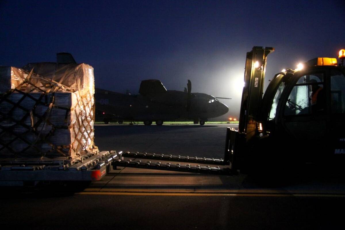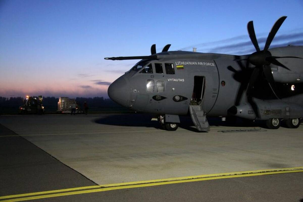 Karinis lėktuvas į Ukrainą išskraidino 5 tonas paramos, dar 6 tonas veš sunkvežimiais