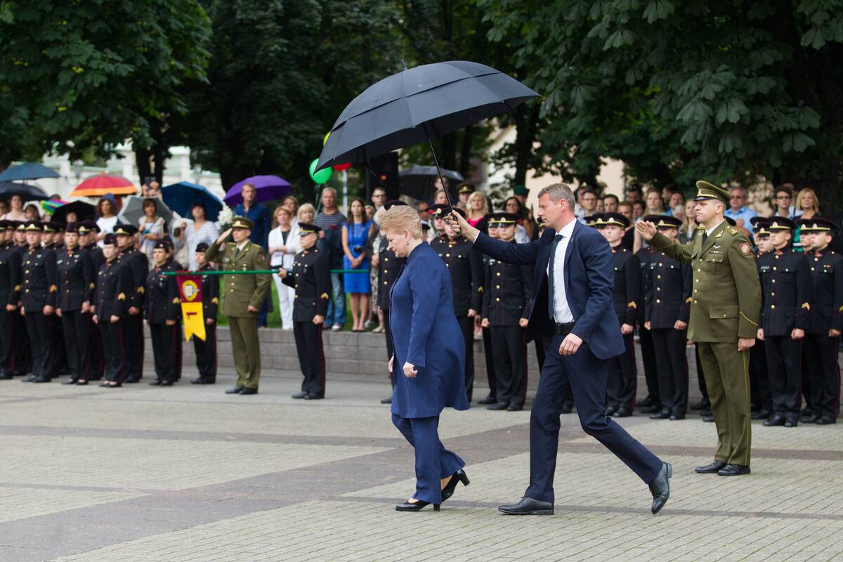 „Pasaulis šiandien pilnas sudėtingų iššūkių. Todėl turime būti pasirengę į juos atsakyti – būti budrūs, nuosekliai stiprinti savo pajėgas, gynybinę parengtį ir kartu su NATO sąjungininkais bendromis jėgomis išsaugoti stabilumą euroatlantinėje erdvėje ir taikų žmonių gyvenimą“, - ceremonijoje S.Daukanto aikštėje sakė prezidentė.