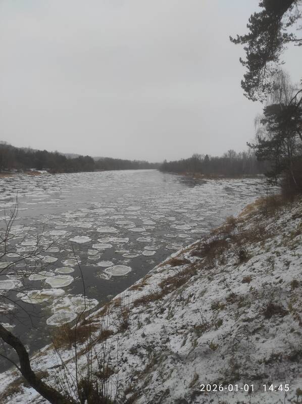 Upėse stebimas ižas, priekrantės ledas, kai kur ledas su properšomis. Ledu apsitraukę nedideli, seklūs ežerai (iki 3 m. gylio). Sausio 1–2 dienomis ledu pasidengs gilesni – iki 5–9 m. – gylio ežerai.
