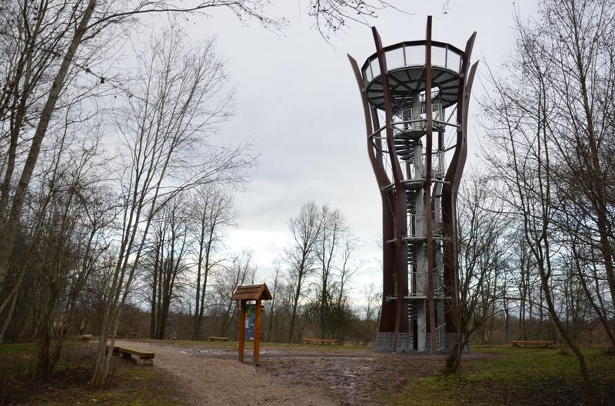 Iš medžio ir metalo konstrukcijų pagamintas modernus Ventos regioninio parko apžvalgos bokštas savo forma primena gėlės žiedą, todėl natūraliai įsilieja į gamtą.
