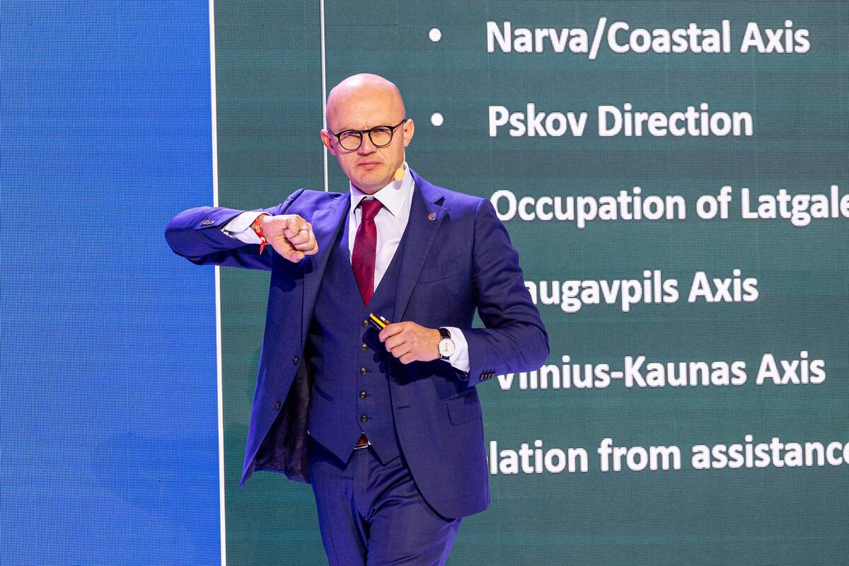 „Po šešių dienų sustiprintos Lietuvos kariuomenės pajėgos sustabdė keturias rusų armijas, kurių pajėgumai yra išsekę ir kurioms grįžti į puolimą reikėtų dar vieno ešelono, kurio jie neturi. Pagrindinės sistemos buvo „Himars“, „Apache“ sraigtasparniai, artilerija, mechanizuotos pajėgos, tankai ir prieštankiniai pajėgumai. Išlaidos amunicijai, be tų, kurios skaičiuotos vėliau, yra 4,5 mlrd. dolerių. Visų technologinių papildymų kaina yra 10 mlrd. JAV dolerių“, – skaičiavo jis.