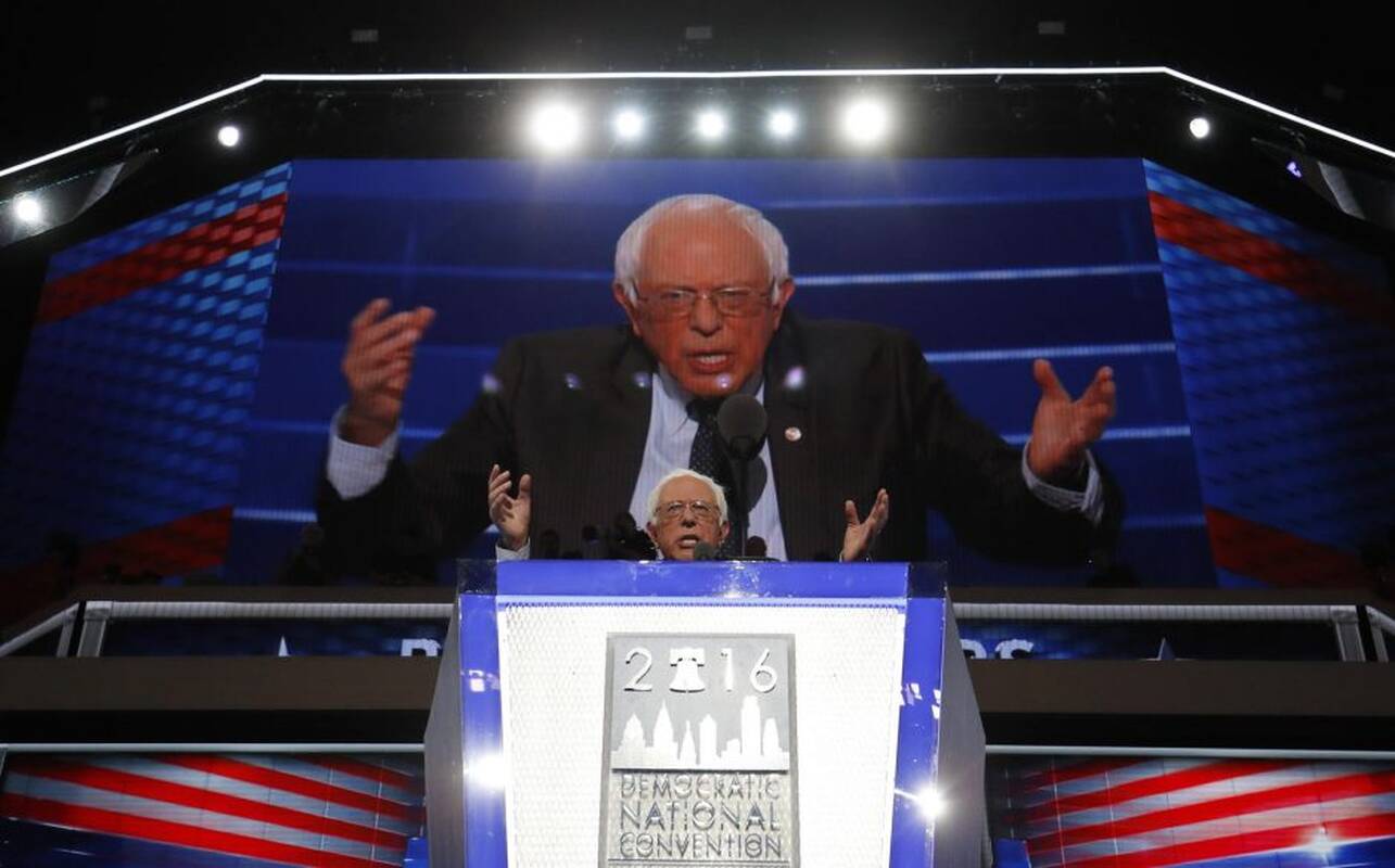 Vermonto senatorius pirmadienį dukart paragino savo rėmėjus palaikyti demokratų nominuotą kandidatę prieš savo kalbą geriausiu eterio laiku.